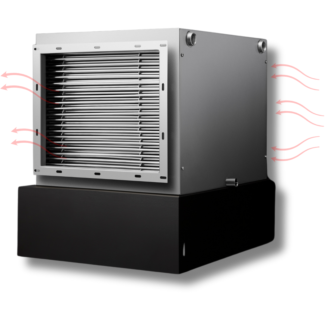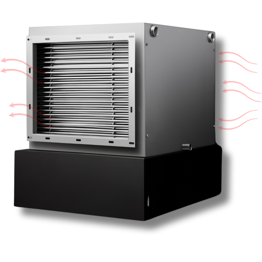 Unlike traditional heat exchangers that rely on tightly spaced fins, Lepido features a finless, open coil design that works with the natural flow of contaminated air.