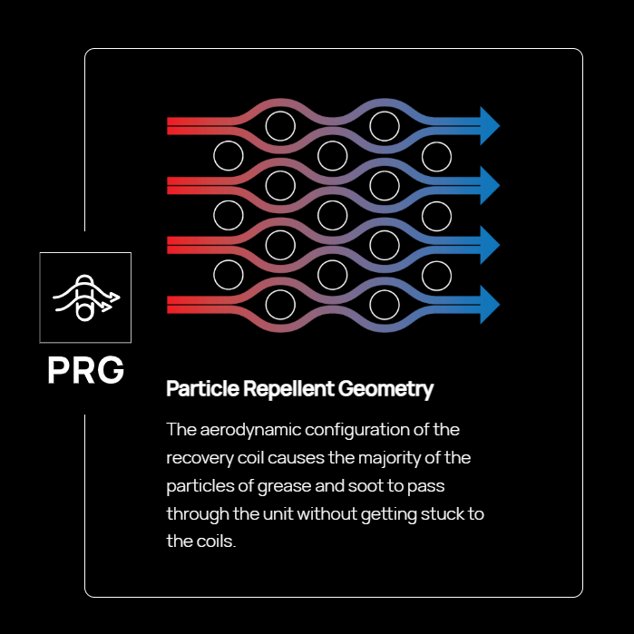 Traditional exchangers clog quickly, but Lepido’s patented Particle Repellent Geometry (PRG®) slows down particulate buildup, preserving high thermal efficiency and reducing maintenance frequency, even in dirty, grease laden exhaust.
