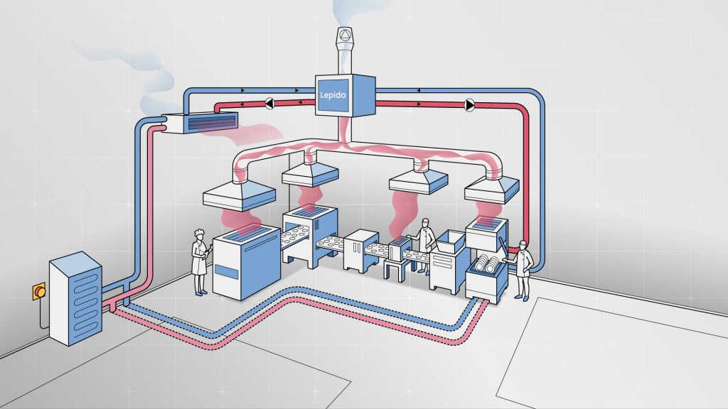 Lepido™ is currently being used by commercial kitchens, production facilities around Europe to recapture excess heat in polluted exhaust air. At Europes biggest pancake factory located in the south of Sweden, the system will recover 1,500,000 kWh per year.